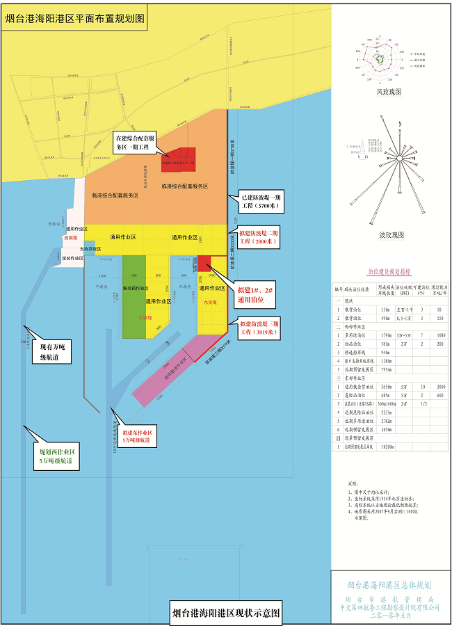 煙臺港海陽港區(qū)地處山東半島中部南端沿海,屬于我國沿海主要港口和國家綜合運輸體系的重要樞紐,整個港區(qū)劃分為東、中、西三個港池和東、中、西三個突堤,規(guī)劃碼頭岸線總長15.5公里,陸域總面積29平方公里,可形成各類碼頭泊位55個,年綜合通過能力6500萬噸、300萬標準箱、40萬輛車次、10萬人次。項目總投資157億元,一期工程已經(jīng)完成投資5.97億元,二期工程計劃完成投資31.67億元。