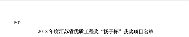中港建設集團有限公司榮獲2018年度江蘇省優質工程獎“揚子杯”榮譽稱號